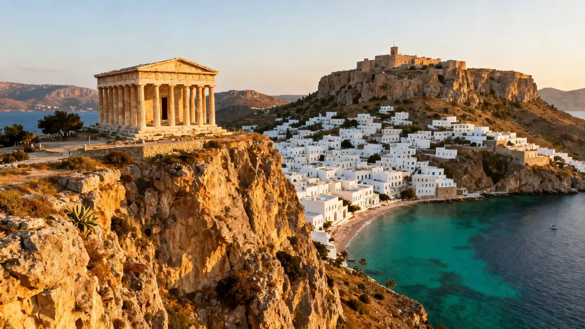 Het Akropolis Lindos vormt een ander hoogtepunt van je Rhodos vakantie activiteiten. Deze antieke burcht op 116 meter hoogte biedt spectaculaire uitzichten over de Egeïsche Zee. De klim naar boven duurt ongeveer 20 minuten, maar je kunt ook kiezen voor een ezeltje-rit. Lindos zelf is een prachtig wit dorpje met traditionele huizen en gezellige taverna's.